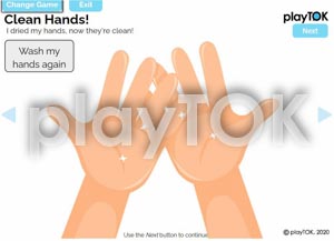 We go through a sequence of washing hands. I even added in an animation for “scrubbing” where you can sing the ABCs or Twinkle Twinkle Little Star with the animation to practice handwashing. See the yucky coronavirus on our hands?