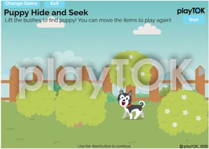 Puppy Hide and Seek is part of “My Puppy” . In this scene, you are looking for the puppy. There is also a ball, ducky and bone hiding behind the other trees! Have fun and hide ALL the items behind!