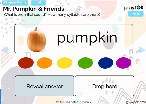 Use the Syllable Tool to help determine how many syllable pumpkin has. You can also talk about the initial and final sounds in the word.
