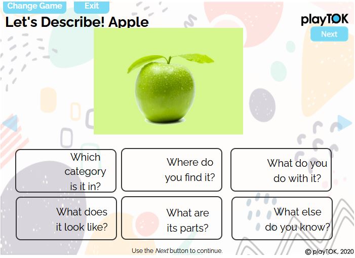 Use the Description Tool to expand vocabulary and language.