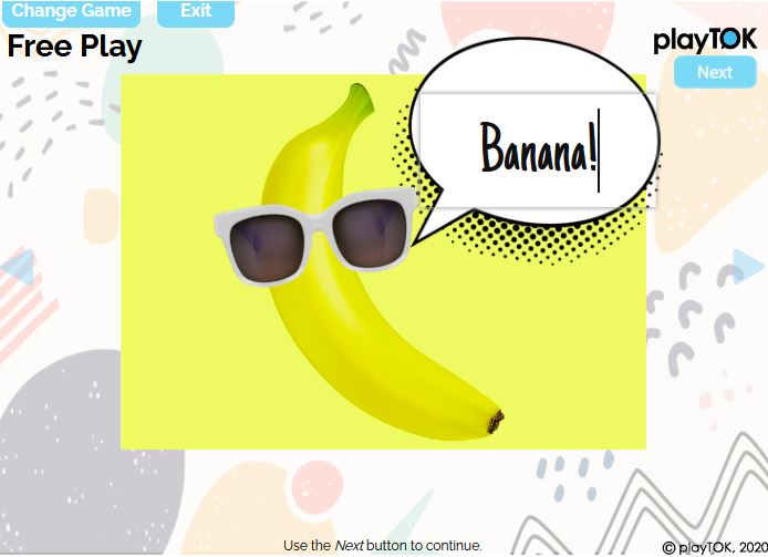 Come up with your own game in this Free Play comic bubble section. For example, you could ask them to type the first letter of each word, the full word, or type out what the banana feels or might say!
